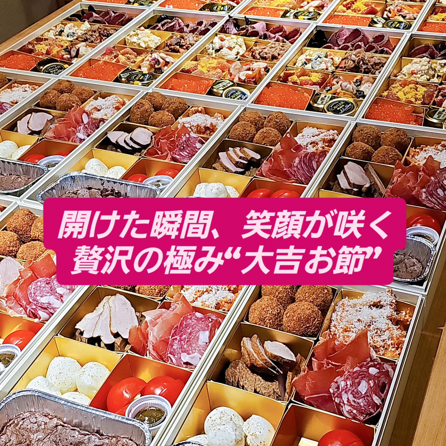 【2026年 新春 大吉お節のご案内】 クチーナ・オルソの北です。 いつも、ご覧頂きありがとうございます。 もう、このご案内をお届けする時が来ました。 新しい一年の幕開けを、華やかに彩る「洋風お節」を本年もご用意いたしました。 厳選した素材と手間を惜しまぬ調理で仕上げた特別なお料理を、二段重に盛り込みます。 ご家族・ご友人と囲むお正月の食卓に、心を込めた一品をぜひお楽しみください。 ■大吉お節は、2種類ございます! ●8寸二段(4人前・14品目) 限定15個 38,000円 ●6.5寸二段(2人前・13品目) 限定5個 26,000円 詳しくは、コチラをご覧下さい! ↓ ↓ ↓ https://www.facebook.com/share/p/19SU9U9eA3/